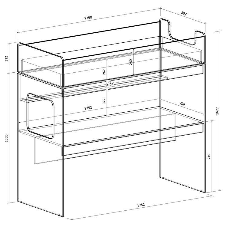 Учебная зона со столом под спальным местом открывает возможности для письменных работ,а также здесь удобно расположить ноутбук.